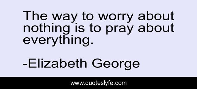 This page presents the quote "The way to worry about nothing is to pray about everything.". Author of this quote is Elizabeth George. This quote is about pray, god, elizabeth-george, christianity, prayer, worry,.