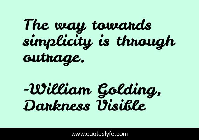 This page presents the quote "The way towards simplicity is through outrage.". Author of this quote is William Golding, Darkness Visible. This quote is about outrage, simplicity, sophy,.