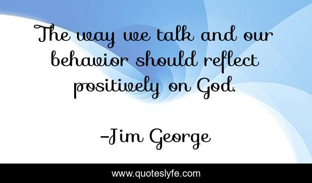 This page presents the quote "The way we talk and our behavior should reflect positively on God.". Author of this quote is Jim George. This quote is about jim-george, god, positivity, christianity, reflect, positive-thoughts,.