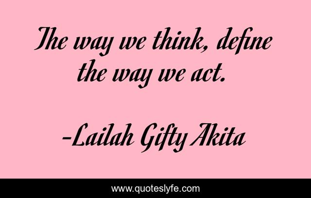 This page presents the quote "The way we think, define the way we act.". Author of this quote is Lailah Gifty Akita. This quote is about thinking, behaviour, attitude, action, positive-thoughts, mind-power,.
