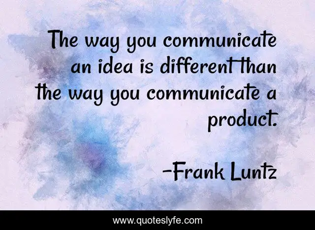 This page presents the quote "The way you communicate an idea is different than the way you communicate a product.". Author of this quote is Frank Luntz. This quote is about idea, way,.