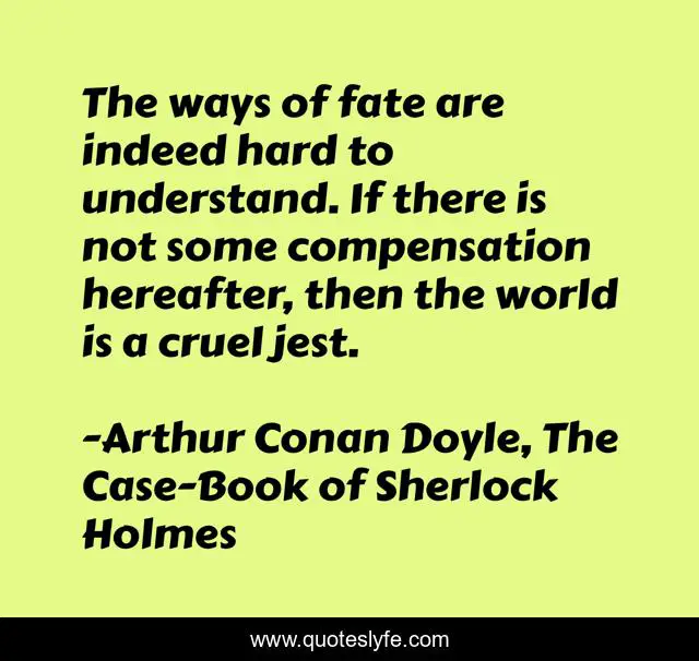 This page presents the quote "The ways of fate are indeed hard to understand. If there is not some compensation hereafter, then the world is a cruel jest.". Author of this quote is Arthur Conan Doyle, The Case-Book of Sherlock Holmes. .