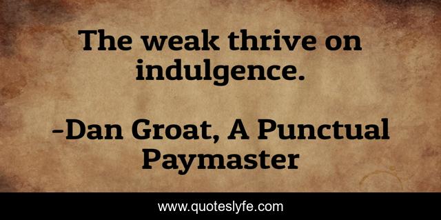 This page presents the quote "The weak thrive on indulgence.". Author of this quote is Dan Groat, A Punctual Paymaster. This quote is about indulgence, weak, weakness,.
