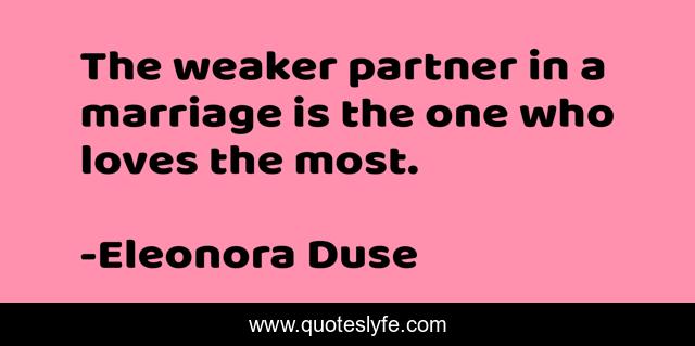 This page presents the quote "The weaker partner in a marriage is the one who loves the most.". Author of this quote is Eleonora Duse. This quote is about partner, most,.