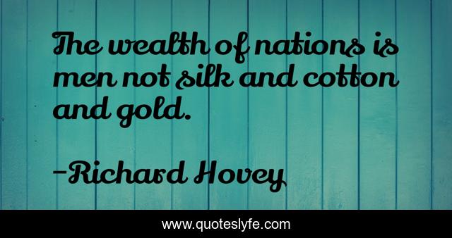 This page presents the quote "The wealth of nations is men not silk and cotton and gold.". Author of this quote is Richard Hovey. .