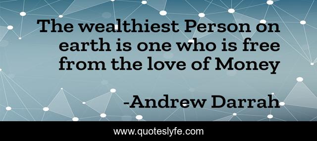 This page presents the quote "The wealthiest Person on earth is one who is free from the love of Money". Author of this quote is Andrew Darrah. This quote is about humor-relationships, spiritual, humor, wealth, business, money, riches,.