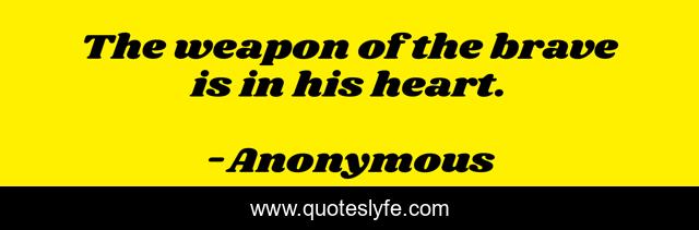 This page presents the quote "The weapon of the brave is in his heart.". Author of this quote is Anonymous. .