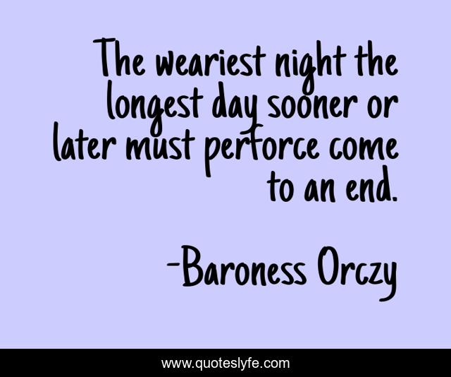 This page presents the quote "The weariest night the longest day sooner or later must perforce come to an end.". Author of this quote is Baroness Orczy. .