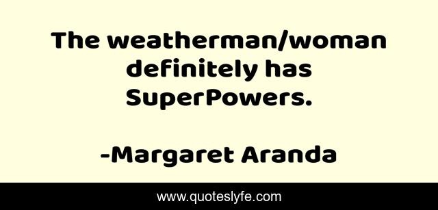 "Margaret Aranda Quotes." Quoteslyfe.com, 2025. Sun. 07 Dec. 2025. <https://www.quoteslyfe.com/quote/The-weatherman-woman-definitely-has-SuperPowers-90204>.