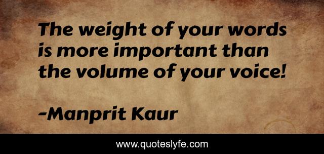 "Manprit Kaur Quotes." Quoteslyfe.com, 2025. Fri. 05 Dec. 2025. <https://www.quoteslyfe.com/quote/The-weight-of-your-words-is-more-112957>.