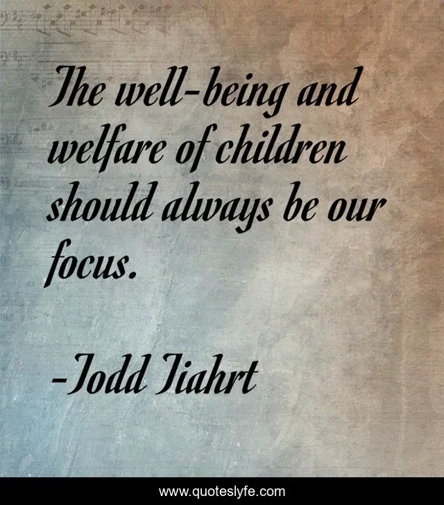 This page presents the quote "The well-being and welfare of children should always be our focus.". Author of this quote is Todd Tiahrt. This quote is about well-being, children, focus,.