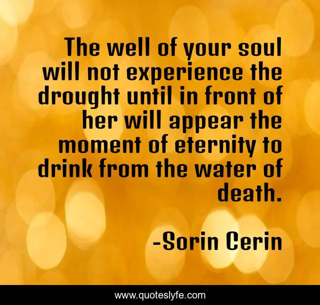 This page presents the quote "The well of your soul will not experience the drought until in front of her will appear the moment of eternity to drink from the water of death.". Author of this quote is Sorin Cerin. .