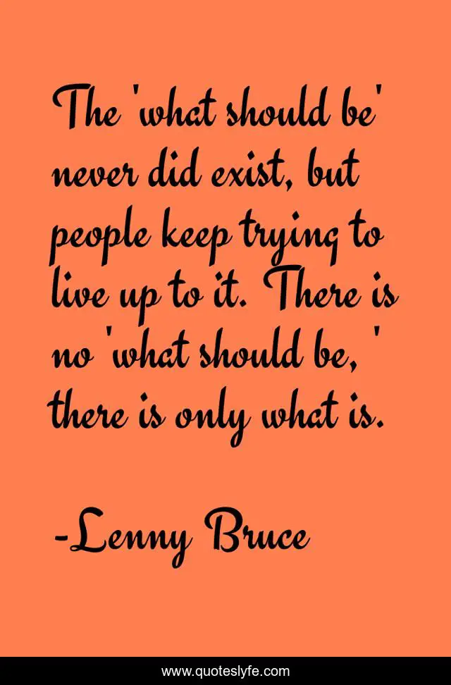 "Lenny Bruce Quotes." Quoteslyfe.com, 2025. Sat. 06 Dec. 2025. <https://www.quoteslyfe.com/quote/The-what-should-be-never-did-exist-143030>.