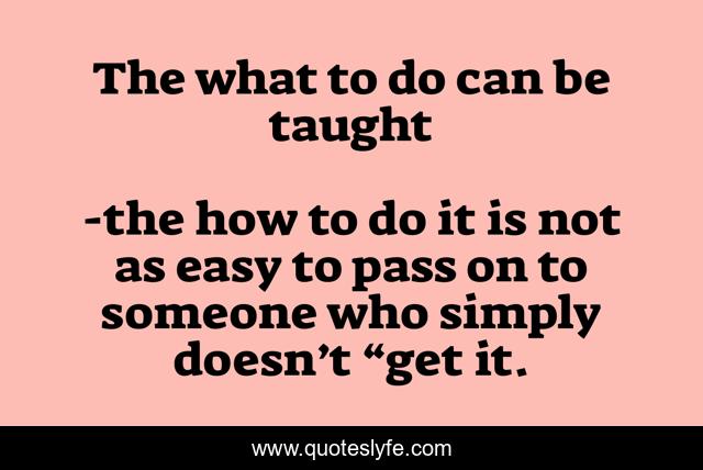 "the how to do it is not as easy to pass on to someone who simply doesn’t “get it. Quotes." Quoteslyfe.com, 2025. Fri. 05 Dec. 2025. <https://www.quoteslyfe.com/quote/The-what-to-do-can-be-taught-64100>.