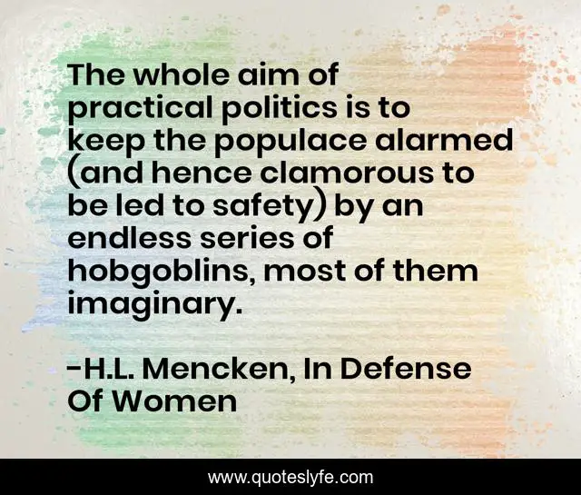 "H.L. Mencken, In Defense Of Women Quotes." Quoteslyfe.com, 2025. Sat. 06 Dec. 2025. <https://www.quoteslyfe.com/quote/The-whole-aim-of-practical-politics-is-56644>.
