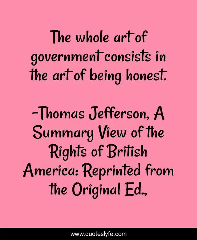 This page presents the quote "The whole art of government consists in the art of being honest.". Author of this quote is Thomas Jefferson, A Summary View of the Rights of British America: Reprinted from the Original Ed.,. This quote is about honesty, government,.