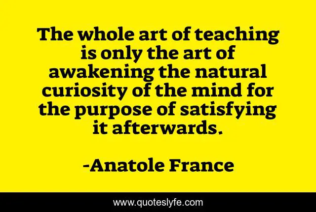 This page presents the quote "The whole art of teaching is only the art of awakening the natural curiosity of the mind for the purpose of satisfying it afterwards.". Author of this quote is Anatole France. This quote is about teaching, curiosity,.