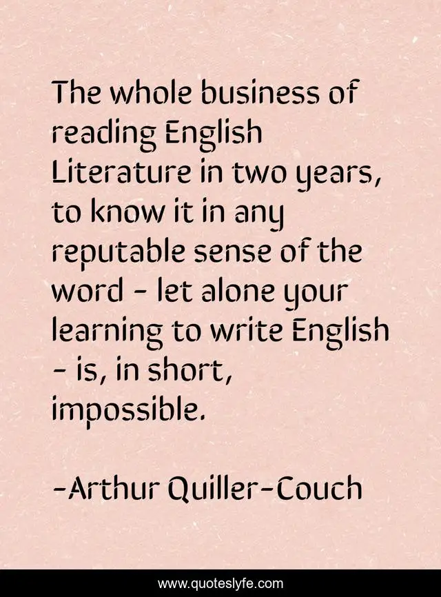 This page presents the quote "The whole business of reading English Literature in two years, to know it in any reputable sense of the word - let alone your learning to write English - is, in short, impossible.". Author of this quote is Arthur Quiller-Couch. This quote is about alone, short, business,.