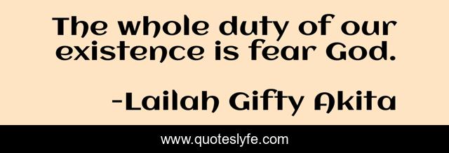 This page presents the quote "The whole duty of our existence is fear God.". Author of this quote is Lailah Gifty Akita. This quote is about duty, existence, wise-words, mission, evil,.