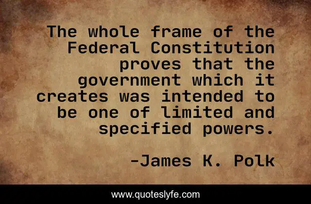 "James K. Polk Quotes." Quoteslyfe.com, 2025. Sun. 07 Dec. 2025. <https://www.quoteslyfe.com/quote/The-whole-frame-of-the-Federal-Constitution-320927>.
