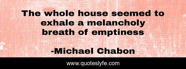 This page presents the quote "The whole house seemed to exhale a melancholy breath of emptiness". Author of this quote is Michael Chabon. .