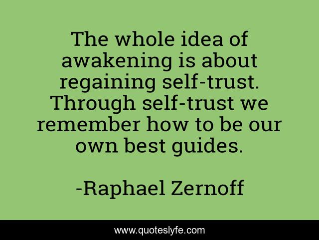 This page presents the quote "The whole idea of awakening is about regaining self-trust. Through self-trust we remember how to be our own best guides.". Author of this quote is Raphael Zernoff. This quote is about self-awareness, self-development, wisdom, spirituality, self-help, raphael-zernoff, self-trust,.