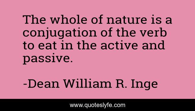 This page presents the quote "The whole of nature is a conjugation of the verb to eat in the active and passive.". Author of this quote is Dean William R. Inge. .
