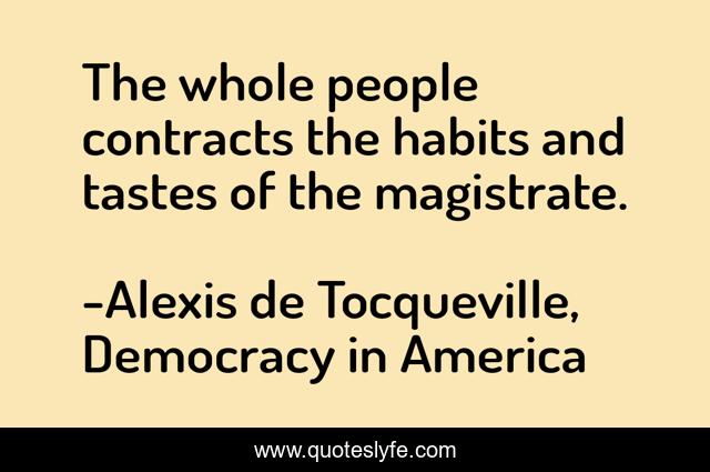 This page presents the quote "The whole people contracts the habits and tastes of the magistrate.". Author of this quote is Alexis de Tocqueville, Democracy in America. This quote is about culture, covetousness, influence, advertising, leadership,.