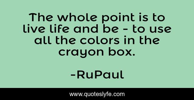 This page presents the quote "The whole point is to live life and be - to use all the colors in the crayon box.". Author of this quote is RuPaul. This quote is about colors, live, live life,.