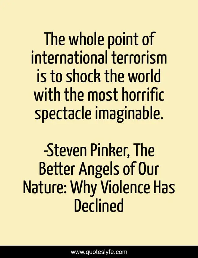 "Steven Pinker, The Better Angels of Our Nature: Why Violence Has Declined Quotes." Quoteslyfe.com, 2025. Fri. 05 Dec. 2025. <https://www.quoteslyfe.com/quote/The-whole-point-of-international-terrorism-is-250813>.