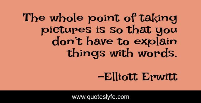 This page presents the quote "The whole point of taking pictures is so that you don’t have to explain things with words.". Author of this quote is Elliott Erwitt. This quote is about eastman-kodak, photography, the-joy-of-photographing-people,.