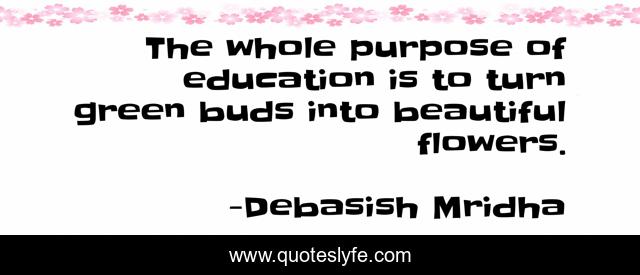 This page presents the quote "The whole purpose of education is to turn green buds into beautiful flowers.". Author of this quote is Debasish Mridha. This quote is about beautiful, debasish, mridha, philosophy, debasish-mridha, purpose-of-education, quotes, inspirational, enthusiasm,.