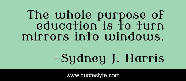This page presents the quote "The whole purpose of education is to turn mirrors into windows.". Author of this quote is Sydney J. Harris. .