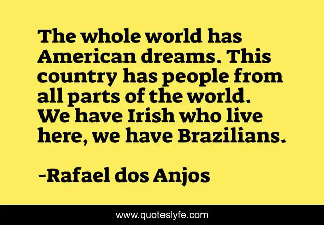 This page presents the quote "The whole world has American dreams. This country has people from all parts of the world. We have Irish who live here, we have Brazilians.". Author of this quote is Rafael dos Anjos. This quote is about world, american, people,.