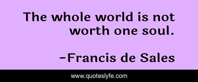 "Francis de Sales Quotes." Quoteslyfe.com, 2025. Mon. 08 Dec. 2025. <https://www.quoteslyfe.com/quote/The-whole-world-is-not-worth-one-216887>.