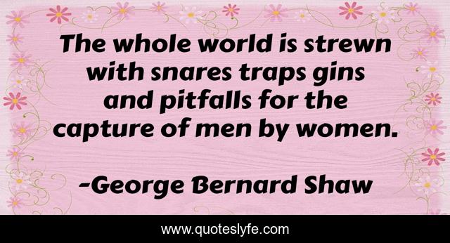 This page presents the quote "The whole world is strewn with snares traps gins and pitfalls for the capture of men by women.". Author of this quote is George Bernard Shaw. .