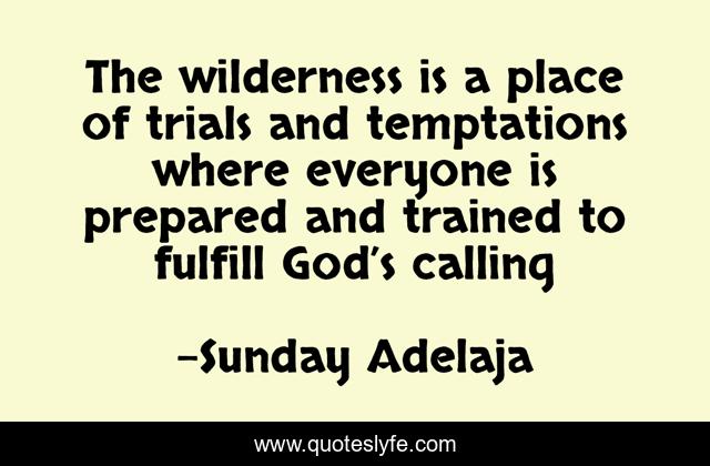 This page presents the quote "The wilderness is a place of trials and temptations where everyone is prepared and trained to fulfill God’s calling". Author of this quote is Sunday Adelaja. This quote is about life, calling, purpose, goals, fulfillment,.