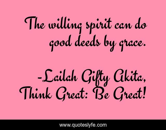 "Lailah Gifty Akita, Think Great: Be Great! Quotes." Quoteslyfe.com, 2025. Tue. 09 Dec. 2025. <https://www.quoteslyfe.com/quote/The-willing-spirit-can-do-good-deeds-95097>.