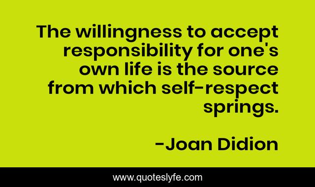 This page presents the quote "The willingness to accept responsibility for one's own life is the source from which self-respect springs.". Author of this quote is Joan Didion. This quote is about positive, confidence,.