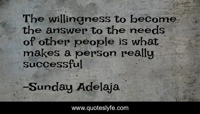 This page presents the quote "The willingness to become the answer to the needs of other people is what makes a person really successful". Author of this quote is Sunday Adelaja. .