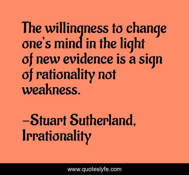 This page presents the quote "The willingness to change one’s mind in the light of new evidence is a sign of rationality not weakness.". Author of this quote is Stuart Sutherland, Irrationality. This quote is about intelligence, weakness,.