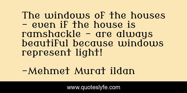 This page presents the quote "The windows of the houses - even if the house is ramshackle - are always beautiful because windows represent light!". Author of this quote is Mehmet Murat ildan. This quote is about windows, light, murat-ildan, turkish-writers, ramshackle,.