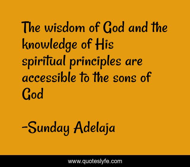 This page presents the quote "The wisdom of God and the knowledge of His spiritual principles are accessible to the sons of God". Author of this quote is Sunday Adelaja. This quote is about accessible, prosperity, spiritual, knowledge, god, riches, principles, wisdom, sons,.
