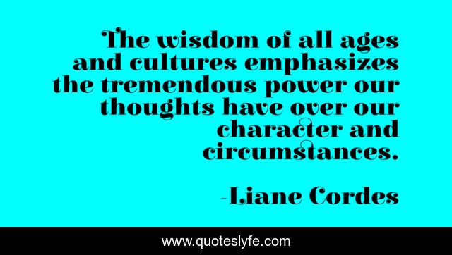 This page presents the quote "The wisdom of all ages and cultures emphasizes the tremendous power our thoughts have over our character and circumstances.". Author of this quote is Liane Cordes. This quote is about positive, confidence,.