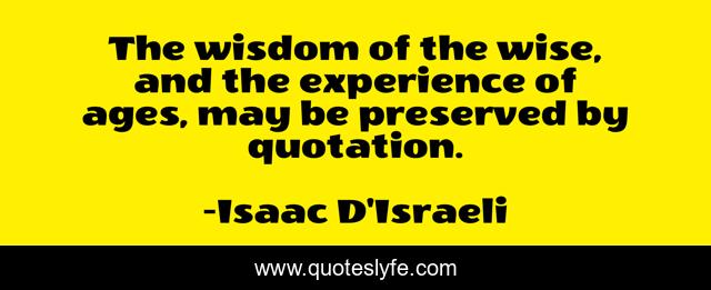 This page presents the quote "The wisdom of the wise, and the experience of ages, may be preserved by quotation.". Author of this quote is Isaac D'Israeli. This quote is about wisdom, wise, quotation,.
