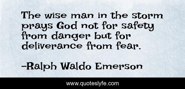 This page presents the quote "The wise man in the storm prays God not for safety from danger but for deliverance from fear.". Author of this quote is Ralph Waldo Emerson. .