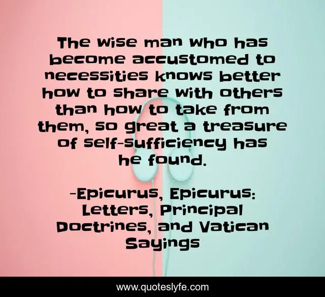"Epicurus, Epicurus: Letters, Principal Doctrines, and Vatican Sayings Quotes." Quoteslyfe.com, 2025. Mon. 08 Dec. 2025. <https://www.quoteslyfe.com/quote/The-wise-man-who-has-become-accustomed-7801>.