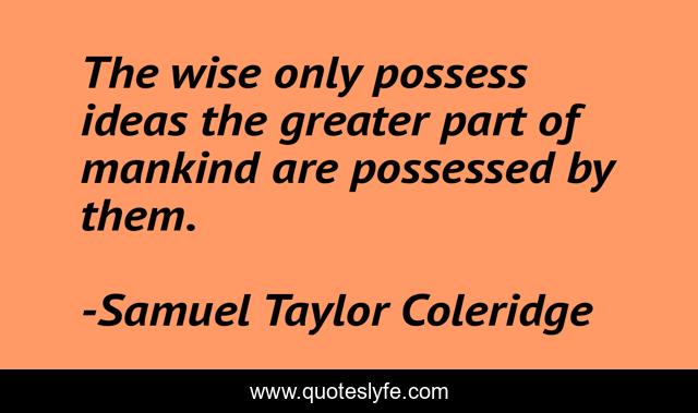 This page presents the quote "The wise only possess ideas the greater part of mankind are possessed by them.". Author of this quote is Samuel Taylor Coleridge. .