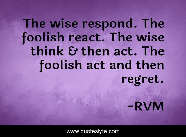 This page presents the quote "The wise respond. The foolish react. The wise think & then act. The foolish act and then regret.". Author of this quote is RVM. This quote is about motivation, inspiration,.