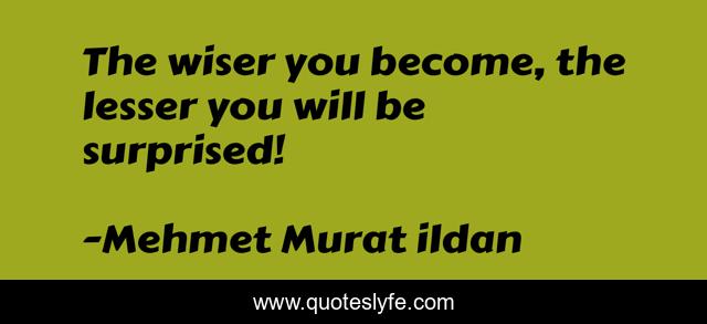 This page presents the quote "The wiser you become, the lesser you will be surprised!". Author of this quote is Mehmet Murat ildan. This quote is about turkish-aphorisms, mehmet-murat-ildan, ildan-wise-sayings, turkish, ildan-wisdom, surprises, turkish-sayings, turkish-playwrights, turkish-wisdom-words,.